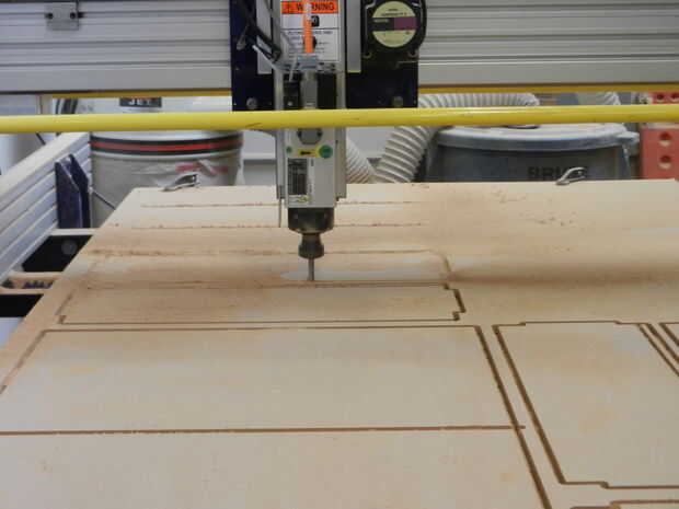 Hay sólo un bit cambia y eso es para los cajones. Las ranuras para los fondos de los cajones requieren un 1/8 en molino de extremo para cortar la ranura. Recomiendo ejecutar estos bolsillos primero para no cambiar las piezas cuando están cortando estos bolsillos de precisión.