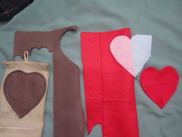 20) dobla el fieltro rojo por la mitad y corta un corazón del tamaño del mismo (usted puede siempre recortar los bordes para hacerlo más pequeño para permitir un 'borde' del corazón marrón en el proyecto final)