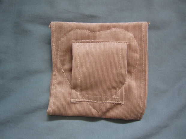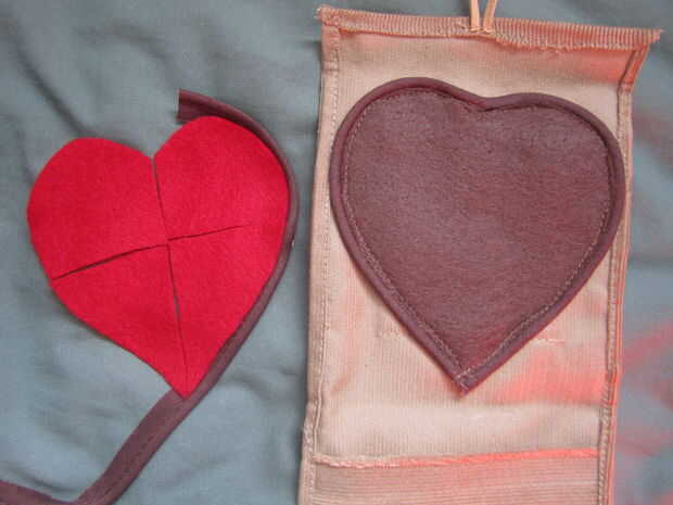 21) si lo desea, puede utilizar tubería marrón para crear un borde en el corazón marrón y máquina de coserlo. En la segunda foto se aprecia un ejemplo de cómo lo hice. Me cubrió la tubería sobre el corazón y luego lo cosió, siguiendo lo más cerca del borde como sea posible.