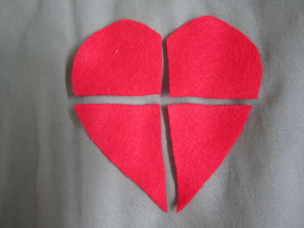 23) corte el corazón rojo en cuatro pedazos, como se ve en la imagen
