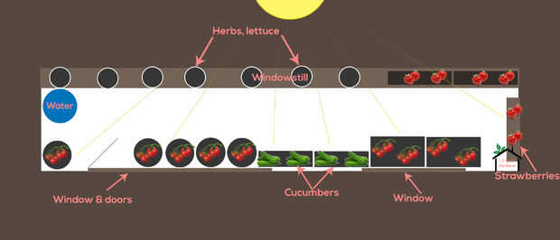 Calcular cuántas ollas tienes y cuántos adapta a tu espacio. Tenga en cuenta dónde está sol y cómo las plantas cubrirá tu windows, ya que se pondrá más oscura dentro. Me acabo de comprar botes más grandes (5 galones/20 litros), por lo menos puedo ajustar. Luego, decidir lo que va a ser en las macetas. Pegan con tomates y pepinos, también tengo algunas fresas que esperemos que no congele durante el invierno. Este año, compré también recipiente de agua mantendrá más agua y tratará de implementar el sistema de goteo para ayudar con mi temporada de vacaciones.