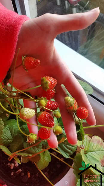 Si le sucede que tiene ventana, añadir macetas de hierbas, lechuga, fresas y otras plantas más pequeñas que no cubriría el sol de las plantas en la parte posterior. También, dejar algunos espacios entre ellas para sol penetre cuando está girando. Si usted es bastante afortunado, usted podrá disfrutar la misma temporada cuando los plantados de las semillas de fresas, desde que germinaron tarde me pude disfrutar fresas frescas hasta noviembre, última foto fue tomada el 17 de octubre el año pasado. Esta temporada de 2016 planté semillas FRIGO (última foto) - Clery, Florencia, Sonata y alguna vez teniendo variedad.