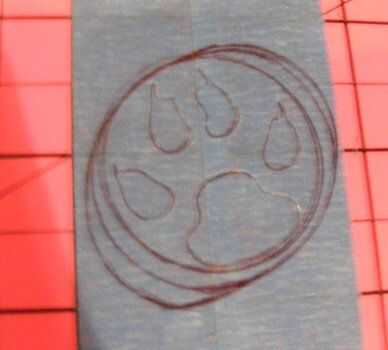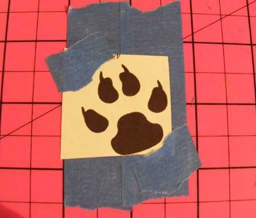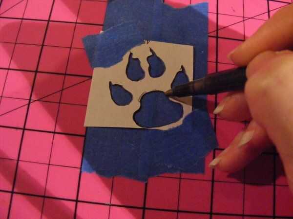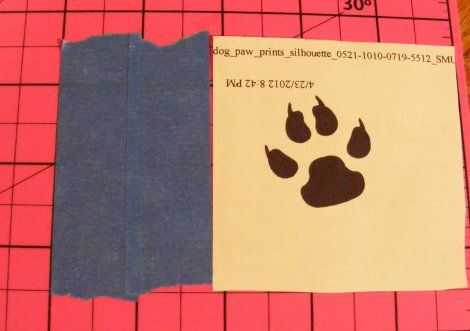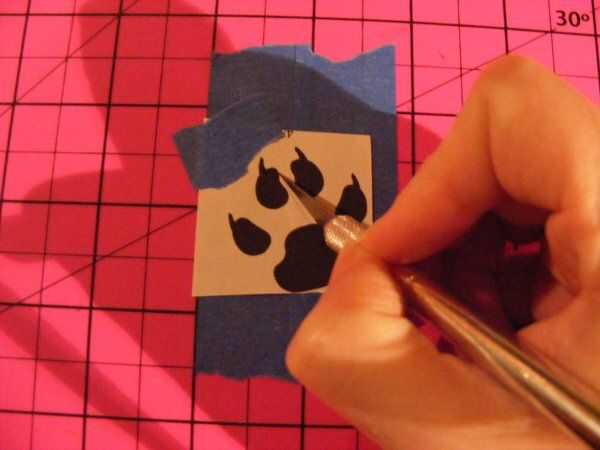 Lugar superpuestas unas tiras de cinta de pintor sobre una superficie de corte.  Recortar el patrón y colocar sobre la cinta. Ahora pegue el patrón abajo.