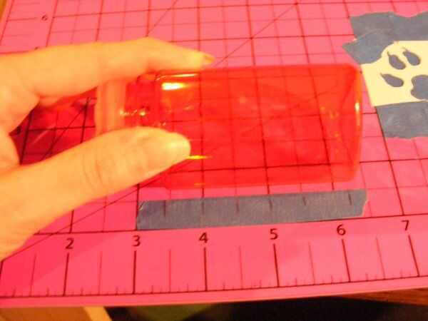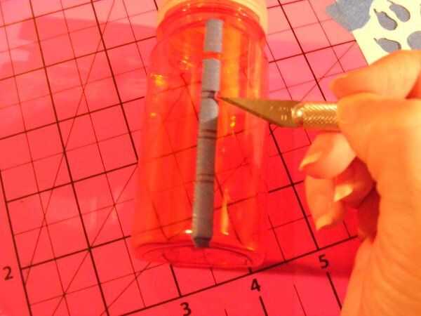 Coloque la cinta a lo largo del lado de la botella, luego use el cuchillo para rebanar cuidadosamente sólo a través de la cinta.