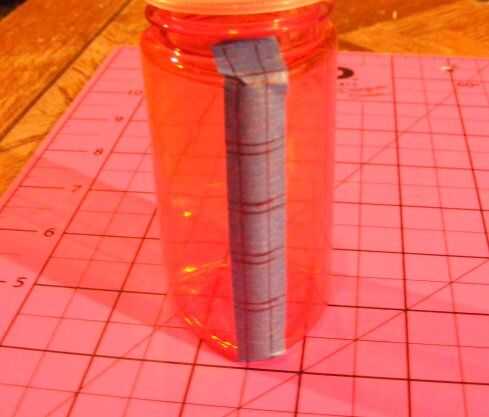 Medir la cinta contra la botella y crear marca marcas, aproximadamente 1/2 pulgada aparte.