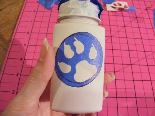 Tome su botella fuera de nuevo y con tiros cortos incluso, rocíe la pintura. Usé pintura Rust-oleum oscuro multicolor con textura, como me ha gustado mucho el look. También me gusta la empuñadura da a las botellas.