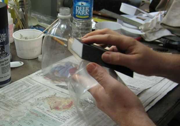 Paso 2: Cortar 2 litros de la botella por la mitad y lijar las dos piezas.