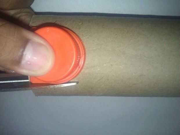 Tomar una tapa de la botella y ponerla con cartón y comienza a cortar el cartón en forma de tapa.
