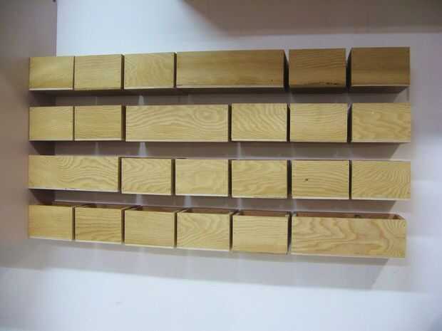 Usé un nivel para marcar sus lugares con los fondos de cada Cala unos 5" aparte. Esto deja un poco más 1 1/2" entre las filas de las cajas cuando se cuelgan para arriba.