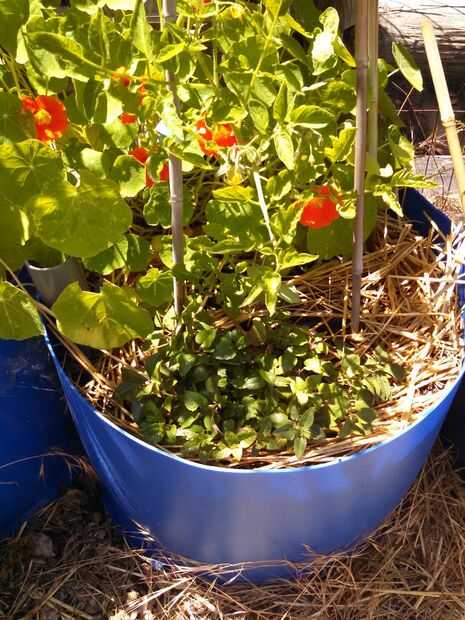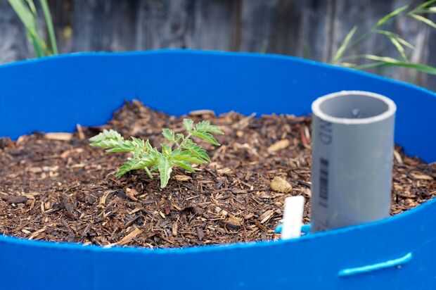 Una vez que todo lo plantado y el acolchado hacia abajo, de agua el recipiente de la parte superior para asegurar que el suelo se humedece. Mantener un ojo en el agujero del desbordamiento en el lado de la papelera y dejar de regar cuando veas el agua empieza a filtrar hacia fuera. Me gusta el agua desde arriba mientras que haz establecidos mis plantas, pero las plantas más grandes se ponen las raíces en el suelo húmedo rápidamente y comenzar a beber desde abajo. Puede llenar el depósito directamente por poner la manguera en el extremo del tubo y el relleno hasta ver el desbordamiento.