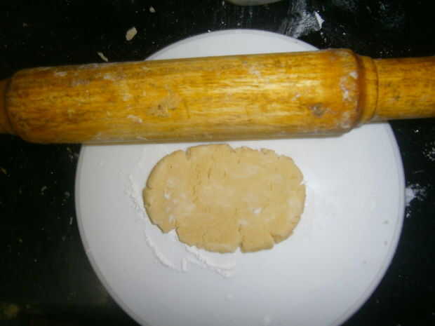 Sacar de la nevera. Para cada disco de masa, sobre una superficie ligeramente enharinada, estirar la masa para mini tartera (estoy usando un molde de mini con forma cuadrado). Estirar cada vez con el rodillo. Luego gire ligeramente la masa de empanada. Rodar hasta que obtenemos una forma mayor que el molde que vamos a utilizar. Siempre el rodillo desde el centro hacia fuera y tener espesor uniforme.