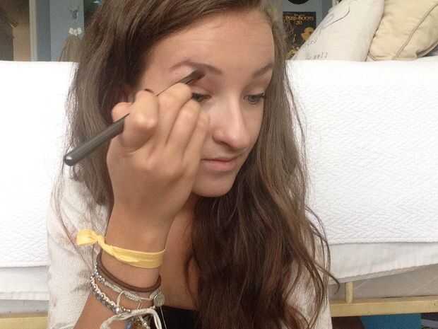 6. con un pincel angular, aplicar carbón a lo largo de la línea de pestañas inferior.