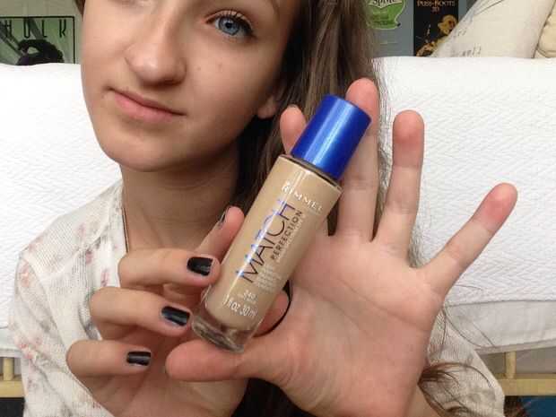 2. Utilice su Fundación preferida. Estoy usando Rimmel London Match perfección en el pantalla beige suave. Usted puede comprar en una tienda de belleza o en línea aquí por 5.99$: http://www.ulta.com/ulta/browse/productDetail.jsp?productId=xlsImpprod4950055#