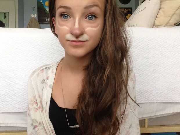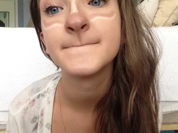 2. con el resaltador, dibujar dos círculos pequeños debajo de la nariz.