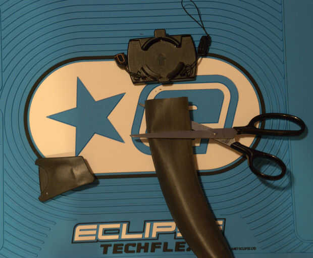 Ahora puede toma la sección del tubo interno y deslizarla sobre la montura de gafas. Asegúrese de que se desliza hasta el fondo como si fuera una correa de gafas.