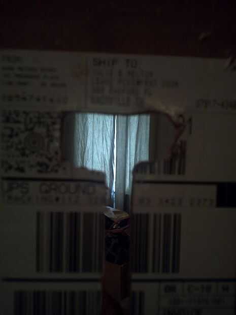 que necesitaba para poder reinsertar mi trabajos en progreso en el cuadro. También debían tener acceso total a la caja en segundos. También debían poder tirar hilo en el cuadro de las tiras de cerca de 6 pies a la vez. Tuvo que cumplir con ciertos criterios. Necesarios para poder almacenar hilo en bobinas completos y necesitaban para poder flop alrededor mientras que siendo tirado en. Tuvo que tener una abertura lo suficientemente pequeño como para no permitir que los gatos curiosos a cavar. Esto es lo que hice. A partir del lado de la tapa hice un pequeño muy estrecho corte "V" va hacia el centro de la caja. Luego cortar un rectángulo del tamaño de un encendedor zippo.