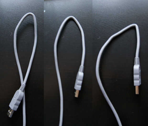 Usted puede doblar el cable como se ve en las fotos abajo, dependiendo del tamaño que quieras.