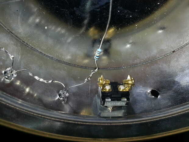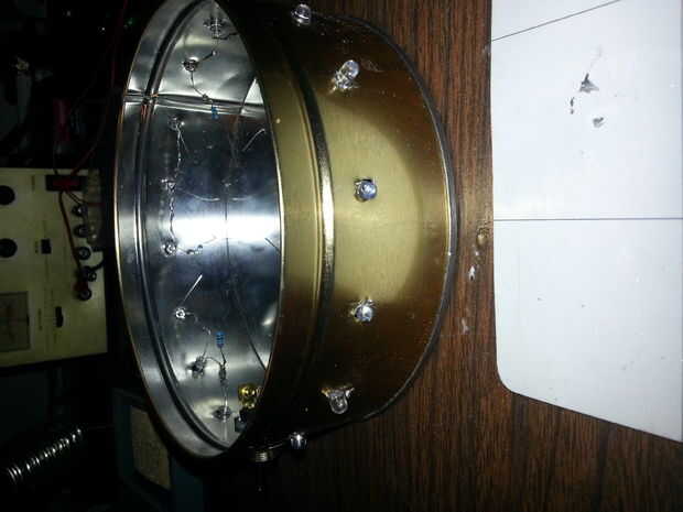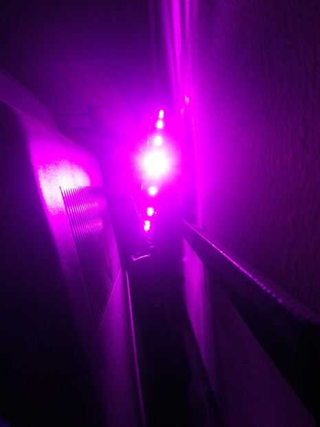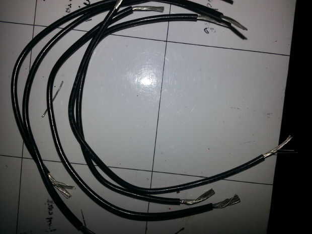Al agregar los leds tengo 3 leds en serie conectada a una resistencia de 130 ohm. En el extremo con la resistencia de la es un cable rojo que viene de cada uno. Uno al final de la tercera llevó el plomo negativo soldado un cable negro a la misma. Hacer esto para cada conjunto de tres LED