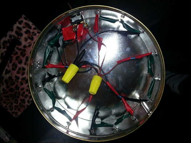 alambre rojo---130 ohm resistor-1er led largo perno-1er condujo pasador corto 2 segundo LED largo perno-el 2 º pasador corto leds al tercer pin largo leds - desde el tercer pasador corto leds a un cable negro.