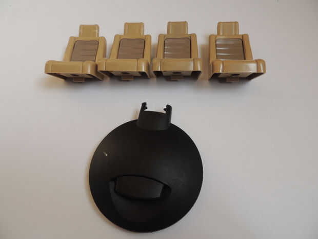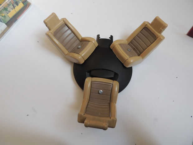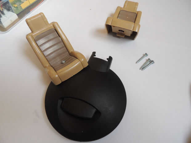Os adjunto las sillas de coche de juguete a la tapa de la máquina de café, con tornillos.