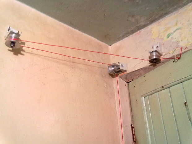 Perfore los agujeros en la pared para colocar los soportes de polea en los lugares adecuados. Depende del contexto de su instalación, las imágenes tienen algunas medidas que tomó y que guie mientras instala el tuyo.