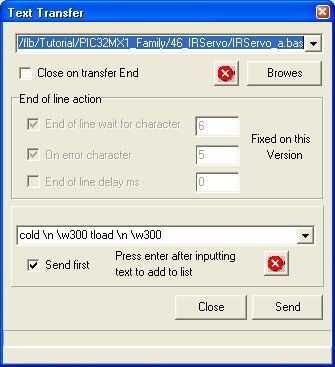 en el texto de diálogo de transferencia como antes y pulsa enviar. Puede que necesite restablecer la IC como se está ejecutando interrupciones y la interfaz de serie no tiene ningún apretón de manos.