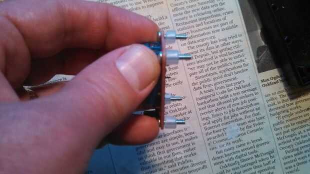 Ponga los tornillos en los agujeros en la placa de relé y entonces las secciones de tubo de plástico sobre los tornillos del hilo de rosca.