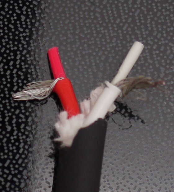 El s-video cable tenía dos cables coaxiales, cada uno de ellos tuvo que ser separado para poder acceder a las cuatro clavijas del enchufe.