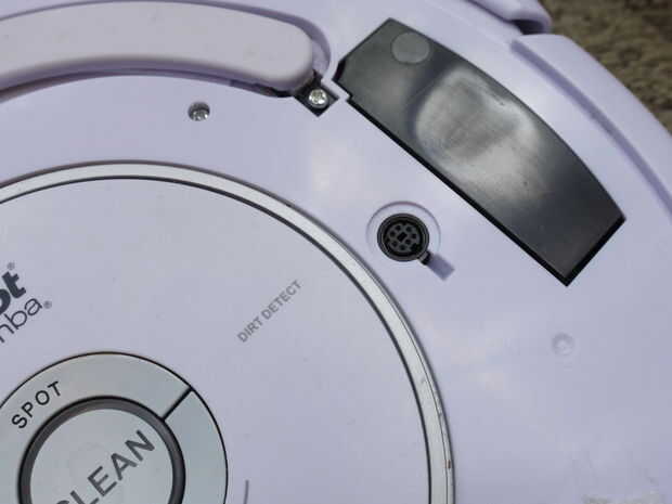 Sacar la placa superior de tu Roomba, exponiendo el conector DIN hembra. Conecte el adaptador en el enchufe y el JST puerto de 8 pines de Brainlink (si tienes un cable de 3 pines, asegúrese de que conectarlo en el lado izquierdo del puerto, como en la foto del paso anterior). Enciende la Roomba y Brainlink.