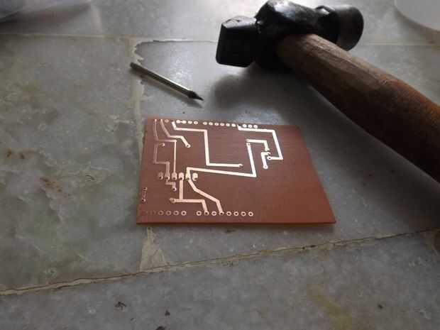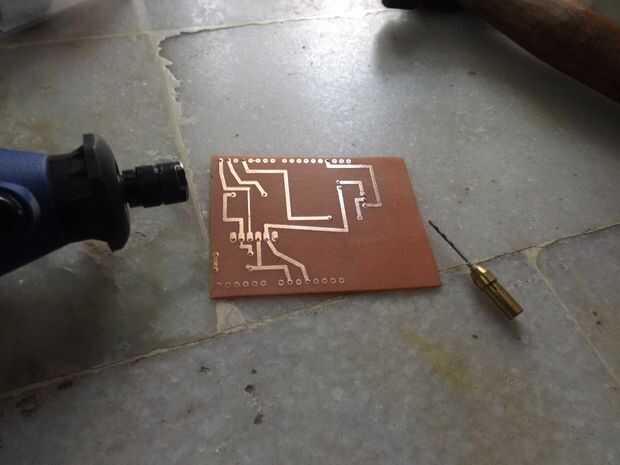 Utilice una aguja como broca de entre 0,8 mm a 1,2 mm y hacerlo con eficiencia, no perfore la licencia de las almohadillas de cobre sus aros exteriores de cobre en el PCB para perfeccionan para soldar. Taladro con cuidado un pequeño error puede romper las líneas de su mano de PCB.