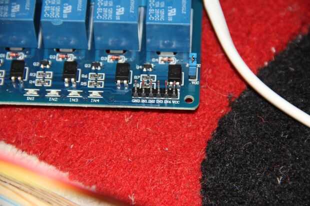 Hay tres pines en el relé que conecta a arduino. Por supuesto, puede haber hasta 10 pines si tienes un módulo de relé que ofrece 8 relés PCB. Estos pernos se etiquetan generalmente algo como en VCC, GND. Donde VCC es el arduino 5 voltios, el GND es la tierra del arduino. El pin en es donde usted controla su repetidor de. Puede conectar esta a cualquier pin del arduino, siempre y cuando sea un pin de salida.