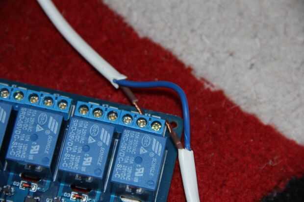 A continuación alicate para cortar el alambre de cobre y conectar el cable vivo COM y si de alambre a través de NO. Eso es todo, ahora sólo tiene que conectar los pines en el relé para el arduino, es bastante simple: