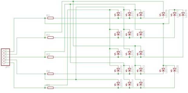 Cuando realice el cableado Charlieplexed de LED, planificación es sumamente importante. Alambre es la manera más fácil y sólo reasignar el LED de numeración en el software si es necesario. Es la inicial de programación un poco más difícil, pero que es probablemente más fácil que tratar de alambre en una secuencia específica.
