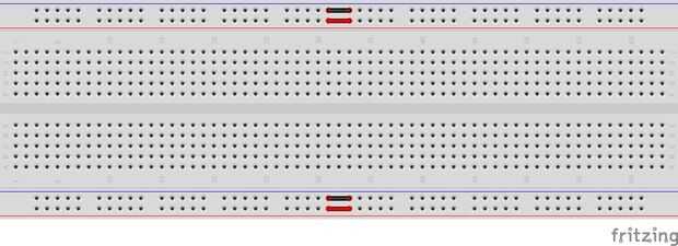 Un montón de tablas de pan se dividen en 2 secciones a lo largo de los carriles de la energía en la parte superior e inferior (que me causó un poco de rayar la cabeza cuando empecé a usarlos.) Mediante el uso de 4 pedazos pequeños de alambre puede puente en la brecha para asegurarse de que su poder va por todo el tablero. Finalmente compré uno que estaba conectado a través de todo el camino pero en caso de tener este problema, se trata de cómo resolverlo.
