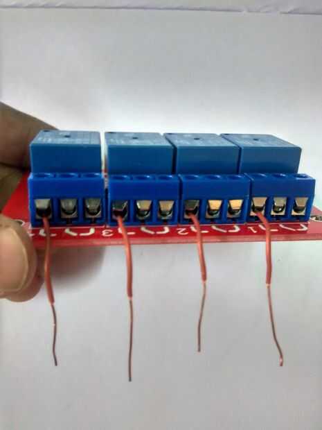 Como mi controlador de relay tablero consta de 4 relés... Soy inserción de 4 bornes para 4 relés y 1 bloque de terminal para fuente de alimentación. después de insertar conectar clavijas alternadas del bloque de terminales para la conexión de neutro de la energía de la fuente y lo de soldadura.