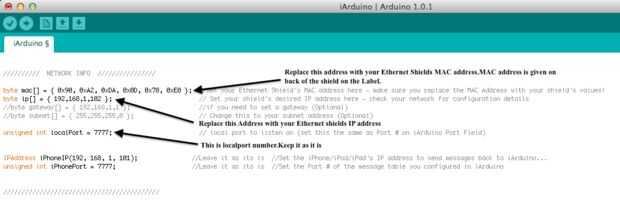 Después de abrir el IDE de Arduino con iArduino código sólo cambia que se muestran en la pantalla adjunta.