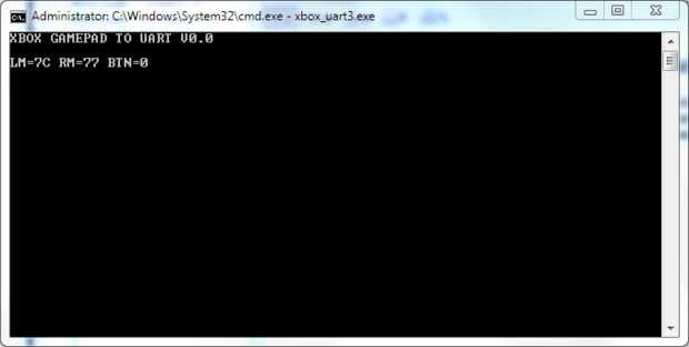 Ahora puede compilar el código de C++ en Visual Studio, iniciar su controlador XBox, ejecutar el programa en tu PC y ver cómo LEDs (o motores) cambian su comportamiento con el movimiento del Stick! Pulsando cualquier botón se activará el zumbador. La salida en la ventana de la consola será similar a lo que se ve en la última captura de pantalla.