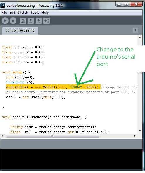 5. plantear el proceso IDE y cambiar "COM4" en la línea "arduinoPort = serie nueva (este," COM4", 9600)" al puerto serie de Arduino que encontró en el paso anterior.