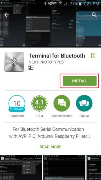 Usted puede descargar cualquier aplicación Serial Bluetooth usted es cómodo con.