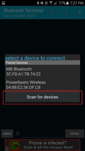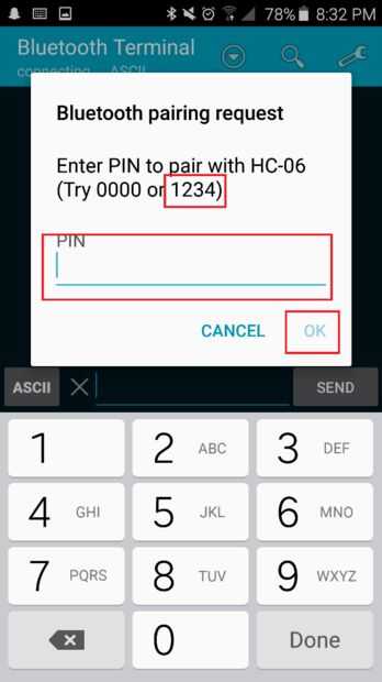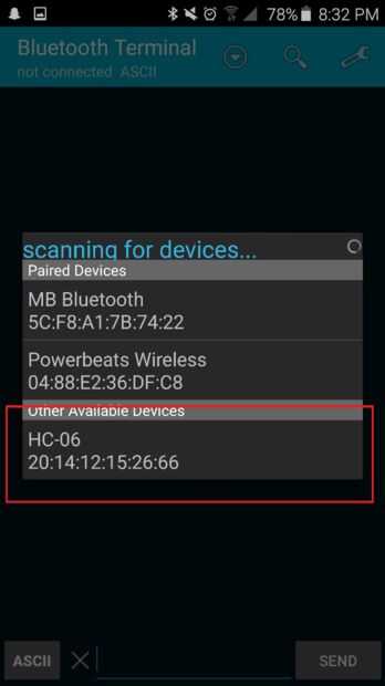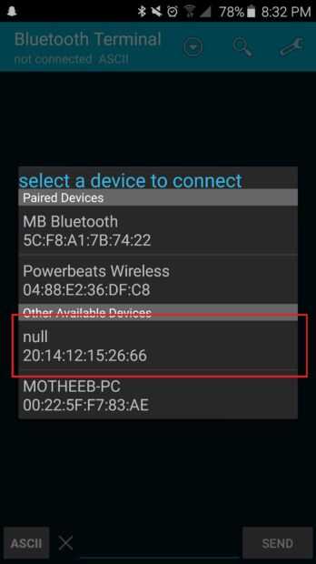 4. اتصل بالقطعة التي ستظهر بأسم (null او de HC-06)
