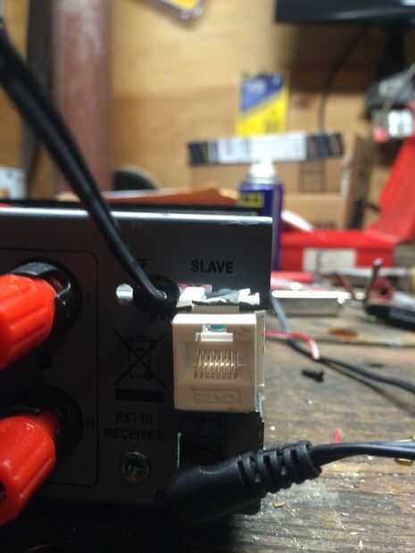 Por supuesto puede realizar un cable ethernet directamente a través del caso al escudo Arduino ethernet pero me decidí a instalar un conector ethernet para facilitar la desconexión y el movimiento de la unidad un poco si es necesario. La unidad común tiene un interruptor en la parte trasera de la caja para poner la unidad en modo "Maestro" o "Esclavo". También tenía un adyacente pequeño cuadrados recortados que no sirvió ningún propósito discernible. Francamente, lo de maestro/esclavo había sido siempre un poco de un misterio para mí demasiado y sus asociaciones con una inquietante parte de la historia americana recomiendan la eliminación de la funcionalidad, lo que era. Desmontar el interruptor y combinando su agujero con la corte sin usar siempre un lugar conveniente para instalar al conector de ethernet como se muestra. No el más bonito oficio, tal vez, pero es en la parte posterior y por lo tanto generalmente hacia fuera de la vista. El cable negro al lado de la toma es la alimentación 5V para el relé de 5V. Si supiera algo de electrónica que supongo podría han utilizado un divisor del voltaje o algunos tal para obtener 5V fuente de la fuente principal de 12V pero desde que tuve un exceso de poder de 5V sin usar fuentes ahí parecía más apuro que valió la pena.