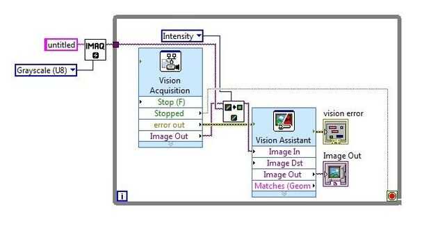 Para comenzar debemos tener una visión con webcam. En la visión del bloque adquisición que puede decidir elegir el formato de vídeo y muchas otra opción. En visión asistente elige el patrón correspondiente. El patrón de juego es la maner para reconocer una simple imagen. Ejemplo la línea de la carretera. Elegir 640 x 400 para el formato de la pantalla.