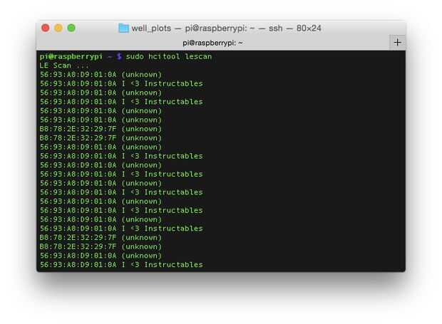 Después de instalar el Bluetooth stack y añadido correctamente el adaptador USB de Bluetooth LE a nuestro Pi de frambuesa ya estamos listos para buscar dispositivos BLE cercanos.