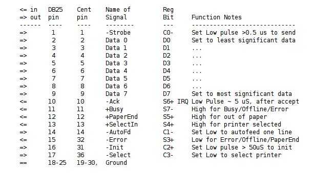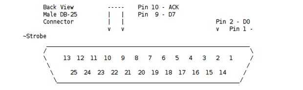 Pines 2-9 es BUS de datos señales, exactamente lo que estaba escrito a los cierres del puerto paralelo con un comando de número.