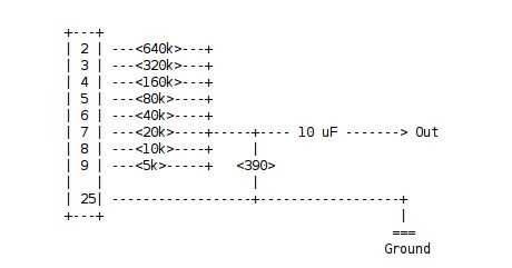 (Puede utilizar diferentes valores de resistencias, pero la relación de los valores de las resistencias debe ser igual. 0.5, 1, 2, 4, 8, 16, 32, 64 etc..) 1, 2, 4, 8, 16, 32, 64, 128