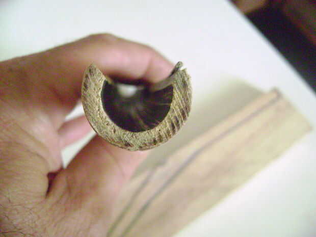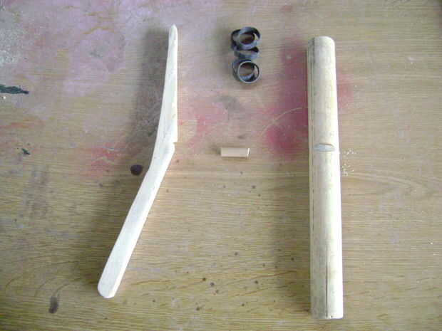 Para lograr este efecto, he utilizado todo recuperación material: un tubo de bambú, una madera a menudo corta correctamente, el elástico de una goma de aire de bicicleta antigua a menudo y un cilindro de madera tipo lápiz.