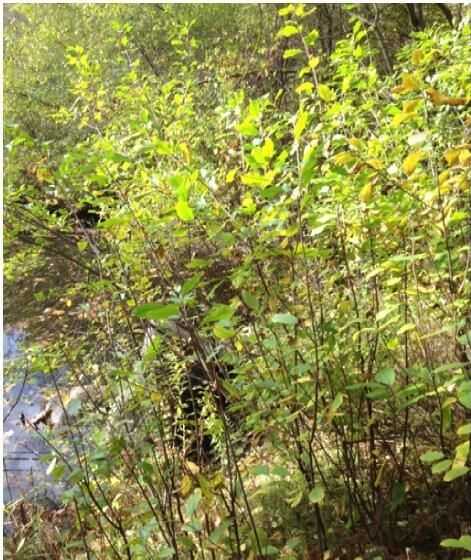 Después de hablar con nuestro planificador de la ciudad y mirando varias áreas de conservación en mi comunidad, elegí uno que creo que seré capaz de proporcionar el mayor impacto hacia la restauración de la maleza del bosque. No fue completamente cubierto con especies invasoras, y permitiría la tracción manual de las especies invasoras. Las especies invasoras sobre todo cubrieron un área de aproximadamente 700 pies cuadrados. Esta propiedad cuenta con un estanque. A menudo es difícil obtener permiso para realizar proyectos ambientales cerca de tierras húmedas. Sin embargo, el Comité de conservación de la ciudad junto con nuestro planificador de la ciudad estaban ansiosos de aprobar este proyecto.