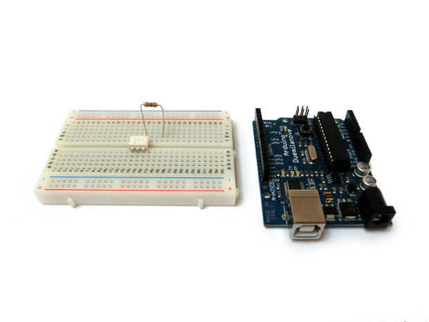 Conecte la otra pata de la resistencia de 1K al pin 1 del chip (este es el pin al lado del punto).