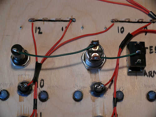 Alambré que el botón cambia a los terminales de altavoz, funcionamiento cable de un lado de los interruptores de botón a cada una de las lengüetas terminales del altavoz correspondiente. Ver el esquema para los detalles.
