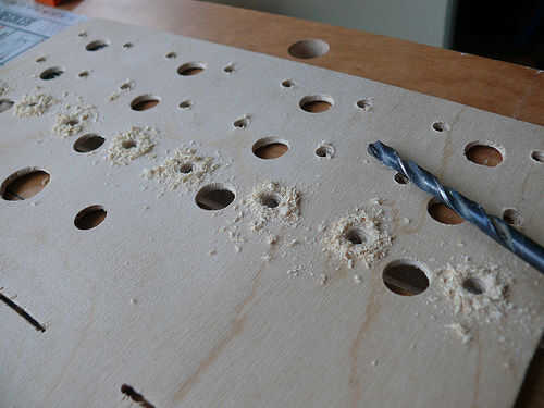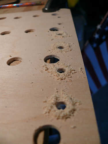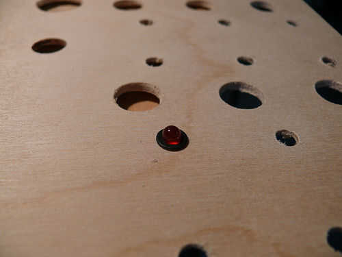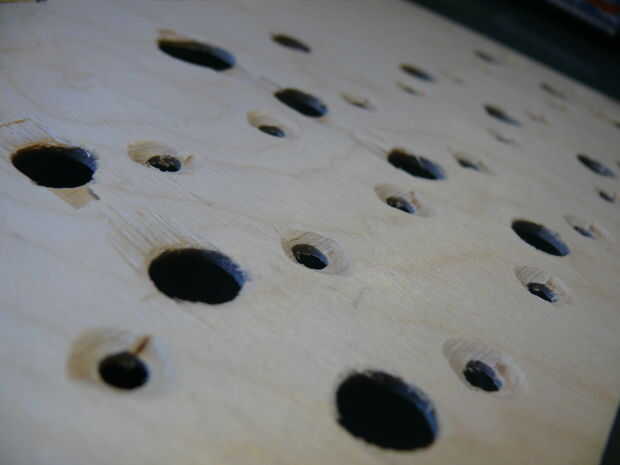 Después de tener todos los agujeros perforados, tendrás que pulir los traseros de ellas para que las partes detrás de los montes de LED pueden ajustar en la parte delantera. La madera es muy gruesa lo hacen sin lijado hacia abajo. Usé la broca lija en forma de barril para la dremel para hacer esto, empuja hacia abajo en un lado, girando 180 grados y hacerlo otra vez (ver fotos). Si usted puede encontrar una forma diferente de montar los LEDs que no tendrás que hacer esto.